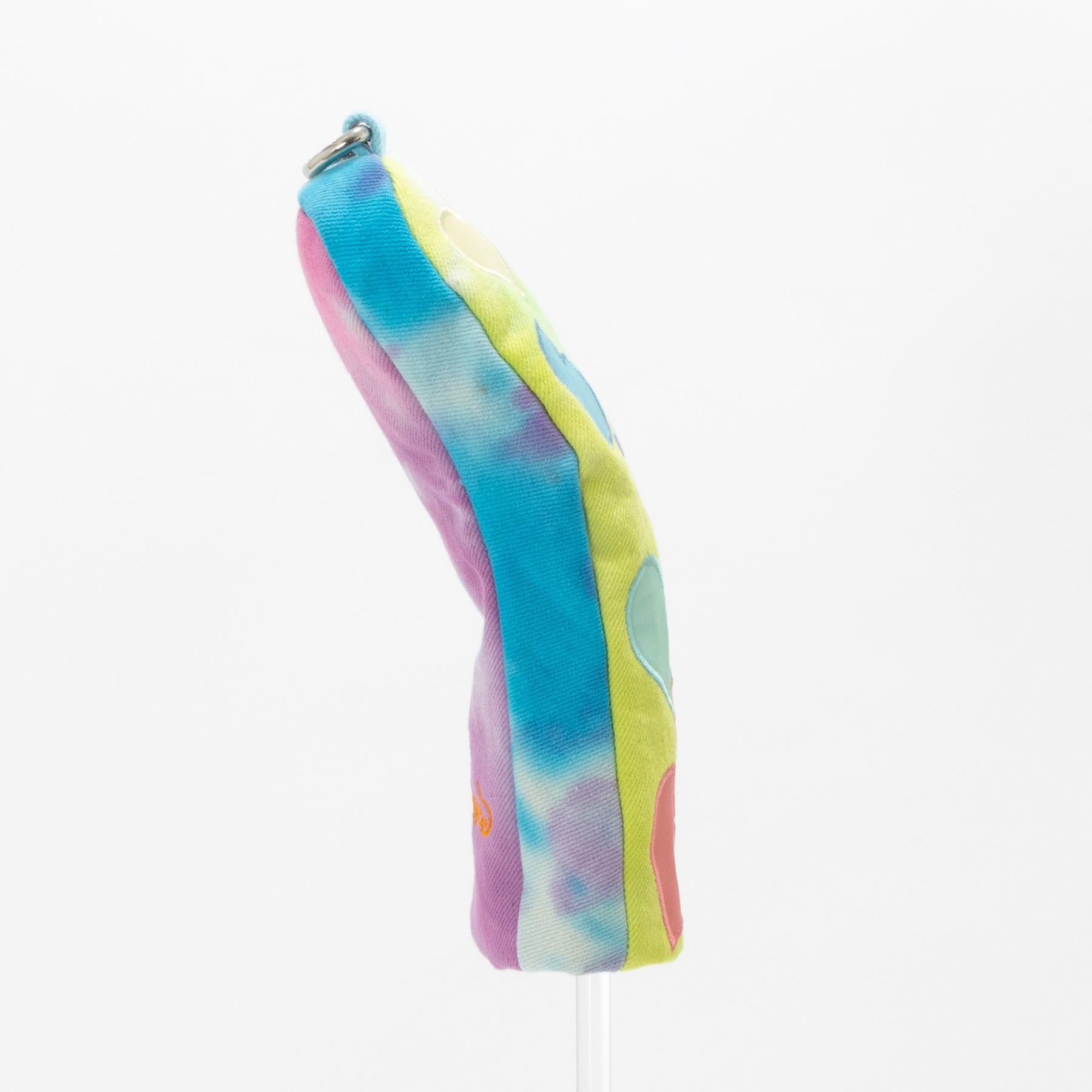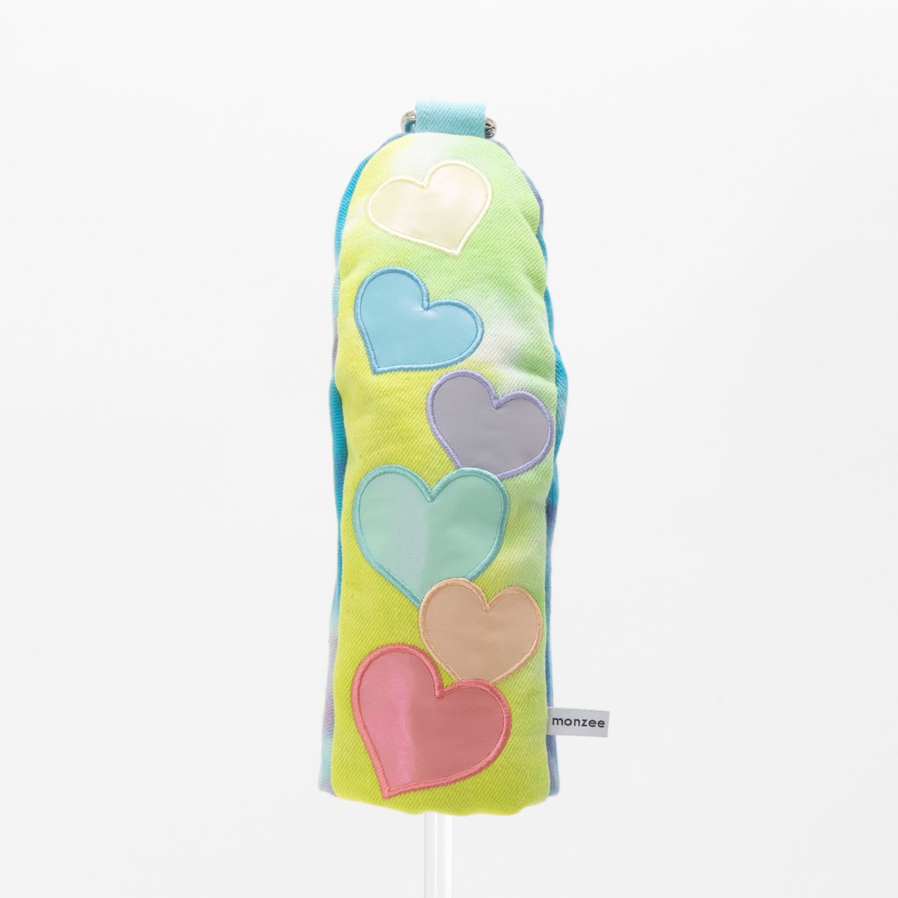 タイダイされた素材にカラフルリフレクター素材のハートアップリケ